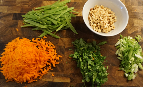 Add the chopped peanuts last and optional extra cilantro for garnish.