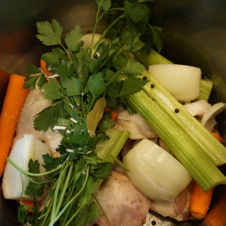 While I LOVE to make chicken stock from scratch, I don't always have the time. So in those instances, I recommend canned low-sodium chicken broth. For busy nights this is a lifesaver. And if you've got an extra few minutes, you can enhance its flavor by adding any combination of the following and simmering for as long as you can: carrots, onions, leeks, celery, fennel, parsley, bay leaf, black peppercorns, or garlic. That'll help the flavor tremendously.